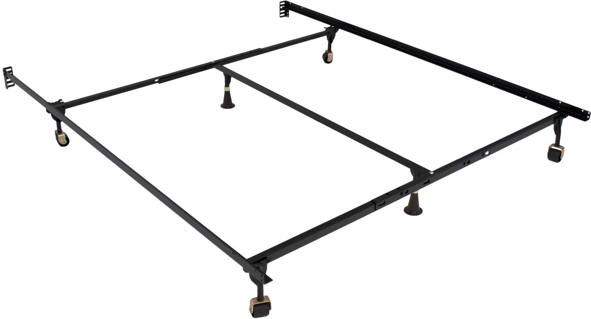 The Atlas-Lock Bed Frame. Adjustable. Simple and easy assembly. Made of high carbon steel for unparalleled strength and durability. Water-based, lead-free black finish. Solid rivet construction ensures durability and stability. Gravity lock is permanently attached. Recessed triple-thick steel legs provide more toe room. Heavy-duty headboard brackets. 7.25"H with glides or wide rollers. 1-Year Warranty.Read More